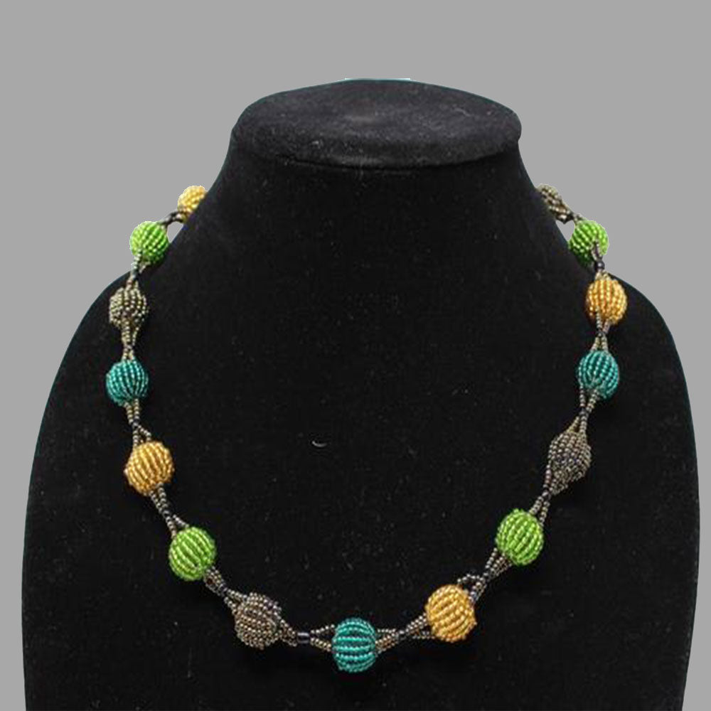 This unique necklace lies beautifully around the neck and is a sure attention gainer. It looks like something that came off of a high fashion runway. This particular necklace is handcrafted which makes the necklace more versatile. You can wear this necklace every season, throughout the year.