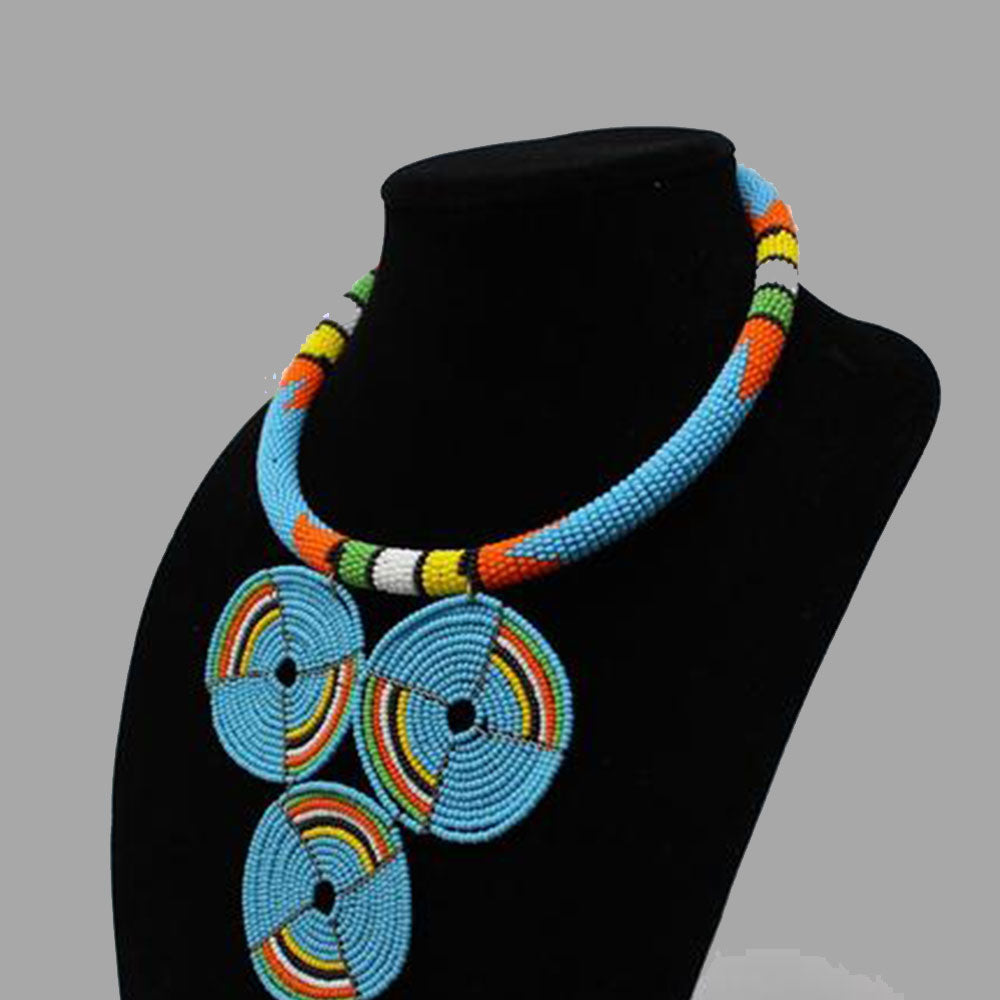 This unique necklace lies beautifully around the neck and is a sure attention gainer. It looks like something that came off of a high fashion runway. This particular necklace is handcrafted which makes the necklace more versatile. You can wear this necklace every season, throughout the year.
